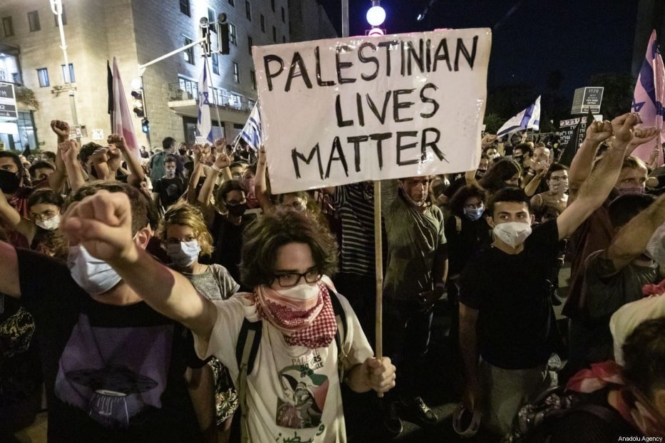 Footage from the demonstration, published by Al Jazeera Arabic, shows the protesters marching to the sound of drums and horns, waving Israeli flags and holding a sign saying “Bibi – stop killing Israel”.