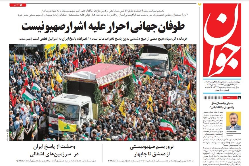 TEHRAN - In an article, Javan addressed the chaotic situation in the occupied territories and wrote: The terrorist act of the Zionists not only forced the Zionist and American officials to warn of the danger of Iran's reaction but also the implementation of security measures showed that the Zionist regime considers Iran's revenge seriously.