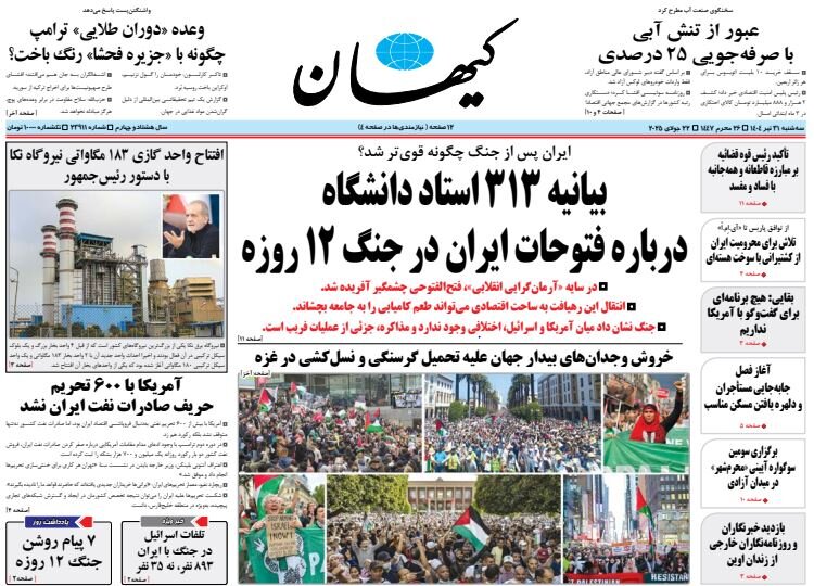 TEHRAN - Kayhan devoted its editorial to Iran's achievements after the 12-day war with Israel and wrote: The recent 12-day war, in which the Islamic Republic of Iran was on one side and the United States, the Zionist regime, and some European governments on the other, had very important results.