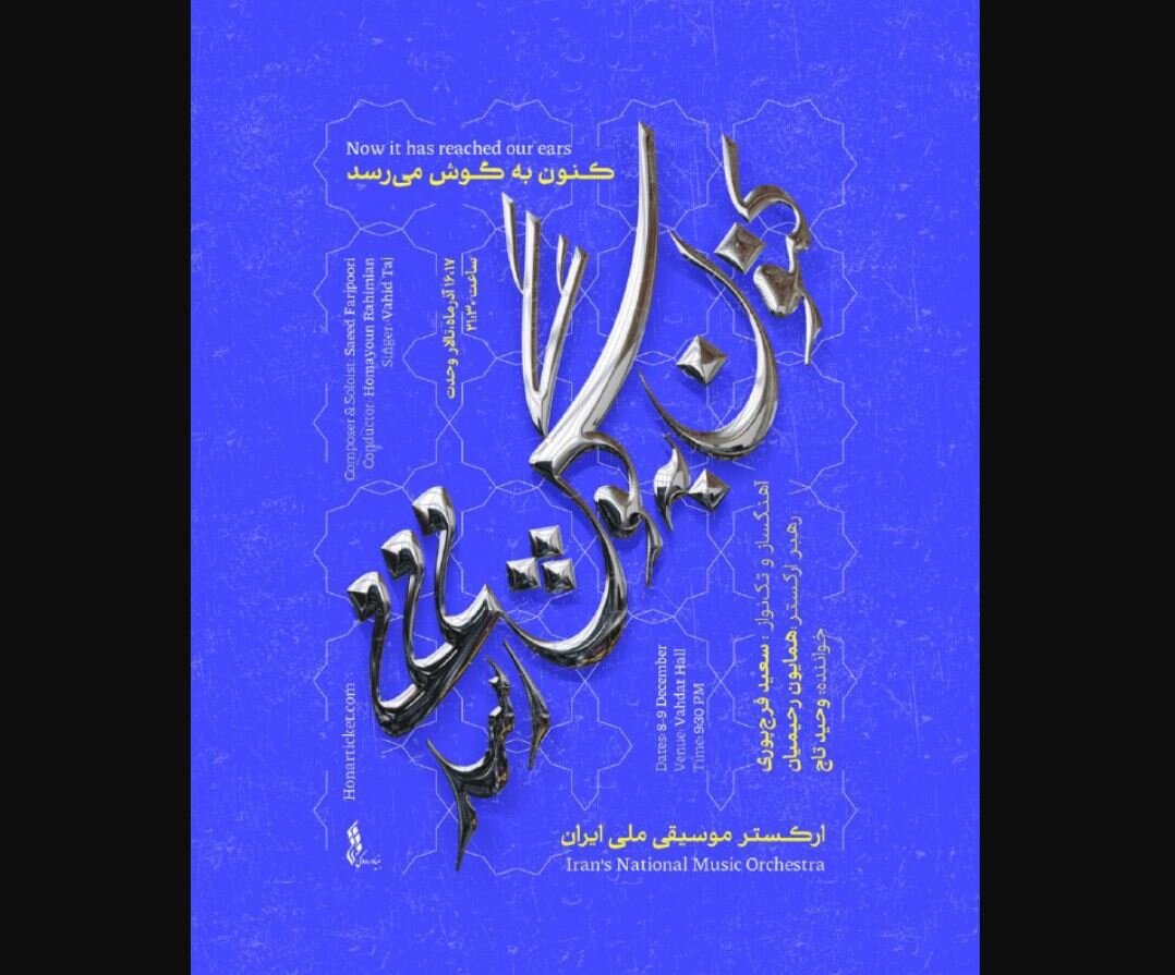 TEHRAN- Iran National Orchestra, conducted by Homayoun Rahimian, will present its latest concert titled “Now It Has Reached Our Ears…” over two nights on December 7 and 8 at Tehran’s Vahdat Hall.
