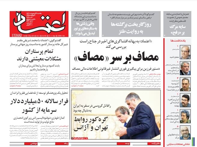 TEHRAN - In an analysis, Etemad discussed the recent visit of Rafael Grossi, Director General of the International Atomic Energy Agency to Iran and the relations between Tehran and the Agency and said: Fears and hopes have increased for a better understanding between Iran and the IAEA regarding the nuclear program.