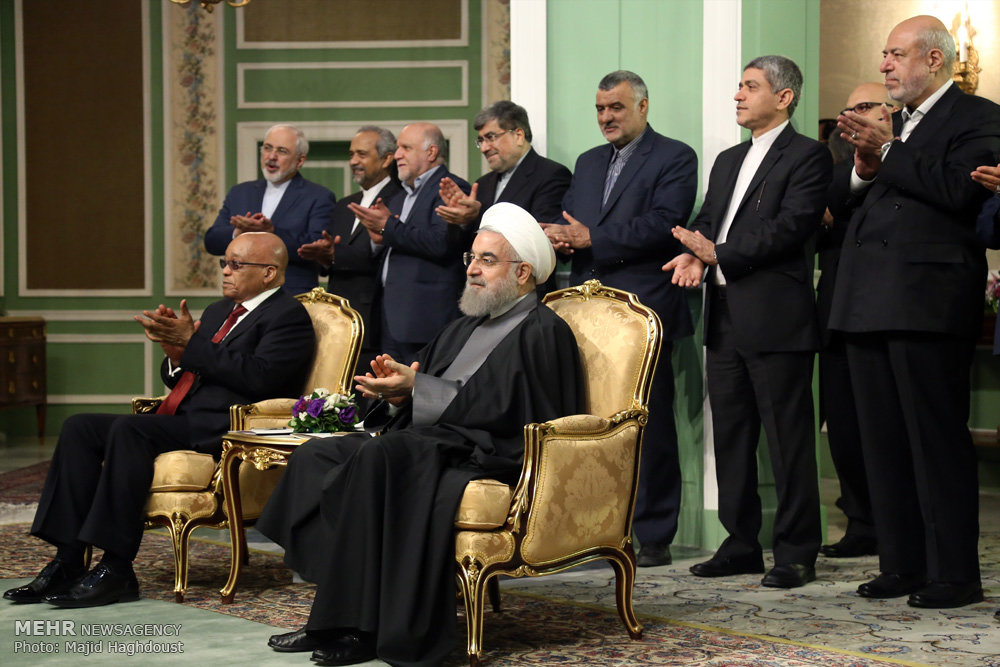 The agreements were signed at the presence of President Hassan Rouhani and his South African counterpart Jacob Zuma who arrived in Tehran on Sunday for a two-day visit at the head of 180-strong delegation including six ministers.