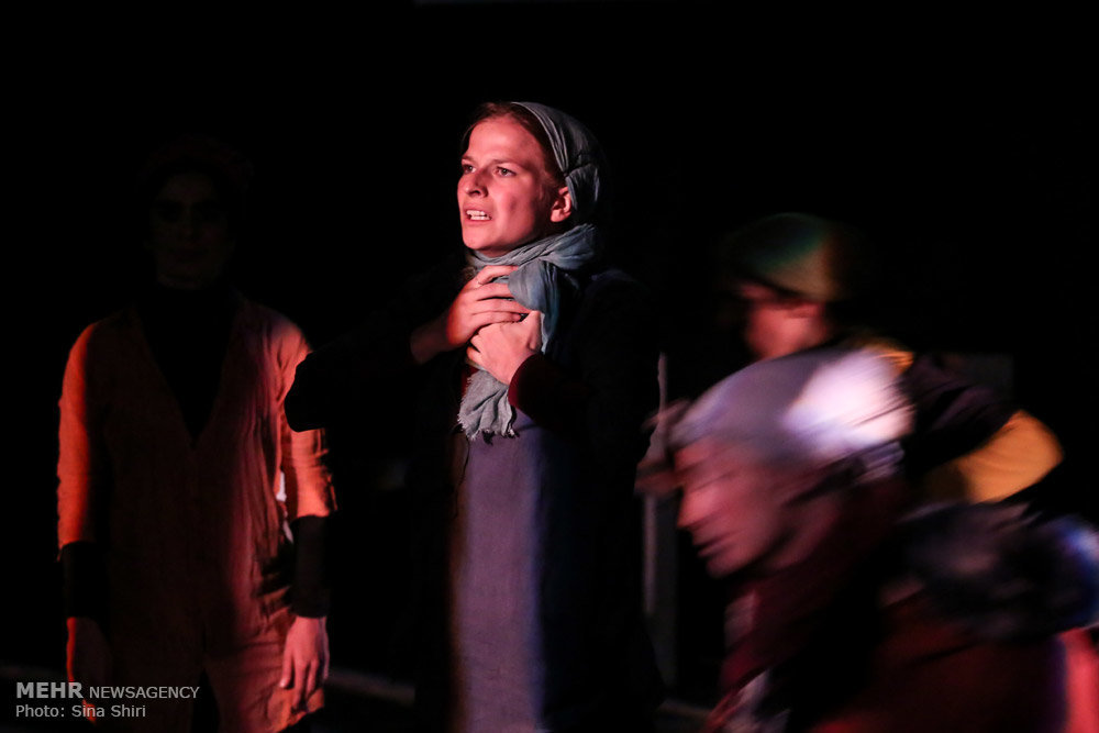 Photo: Marene van Holk acts in a scene from “London, Tehran, Rome, Amsterdam”, a play staged by Iranian director Arvand Dashtaray, at Tehran’s Hafez Hall on November 4, 2014. (Mehr/Sina Shiri)