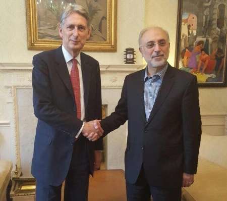 TEHRAN - Ali Akbar Salehi, director of the Atomic Energy Organization of Iran, held a meeting with British Chancellor of the Exchequer Philip Hammond on Thursday to soothe banks’ concerns over ties with Iran.