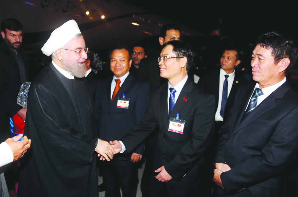 President Rouhani shakes hands with Vietnamese Ambassador to Iran Nguyen Hong Thach in Hanoi