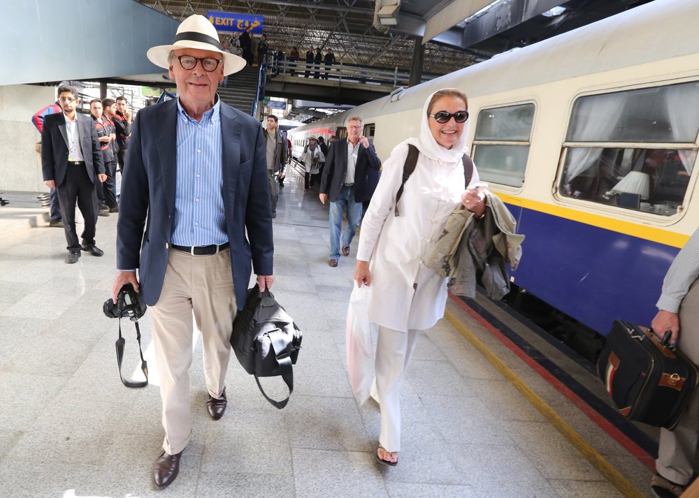 PHOTO: Tourists walk on a platform at a station in Tehran after arriving in the Iranian capital on a luxury train from Budapest on October 27, 2014. (AFP PHOTO/Atta Kenare)