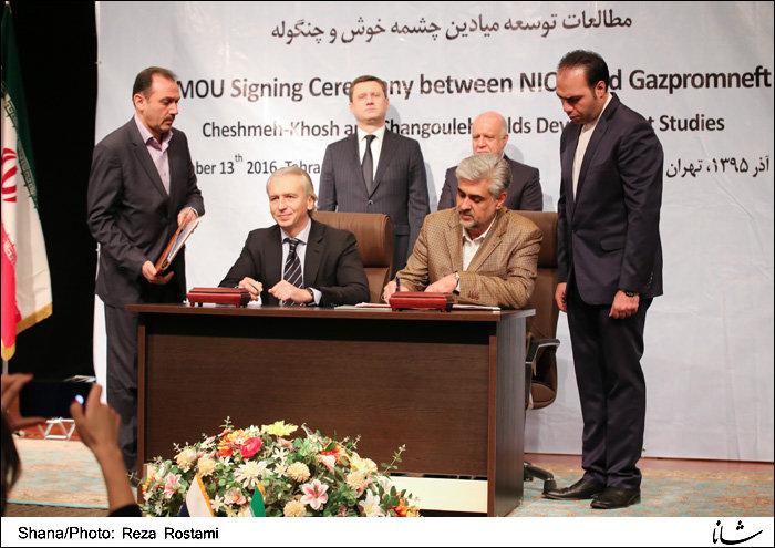 Based on the MOU, which was signed in Tehran by Managing Director of Iran Central Oil Fields Company (ICOFC) Salbali Karimi, and Gazprom Neft’s Chairman of the Management Board Alexander Dyukov, the development study of Cheshmeh-Khosh and Changuleh fields was awarded to the Russian company.