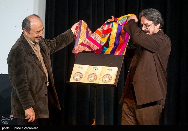 Tar virtuosos Dariush Talai (L) and Hossein Alizadeh unveil the album “The Burning Light” by Kamamncheh virtuoso Ali-Akbar Shekarchi at Tehran’s Arasbaran Cultural Center on Jan. 7, 2017. The collection teaches the radifs of Mirza Abdollah for Kamamncheh. The total collection of more than 200 gushehs -- traditional melodic modes -- in all 12 dastgahs is known as the radif. (Tasnim/Hossein Zohrevand)