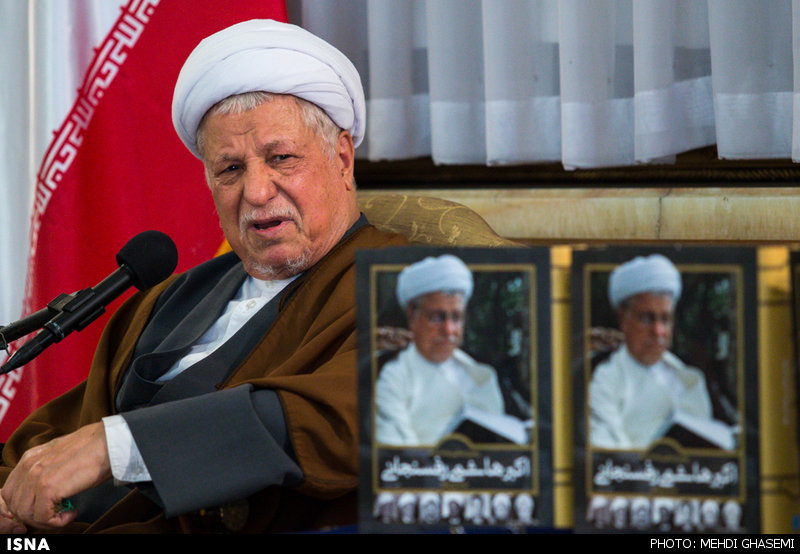 Photo: Ayatollah Akbar Hashemi Rafsanjani speaks after unveiling “A Narrative of the Life of Ayatollah Akbar Hashemi Rafsanjani” at the Expediency Council in Tehran on May 1, 2016. Jafar Shiralinia is the writer of the book. (ISNA/Mehdi Qasemi)