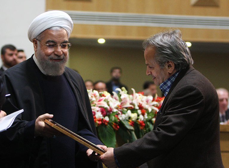 Photo: Afghan expert Najib Mayel Heravi receives an award from President Hassan Rouhani for his lifetime studies on Islamic manuscripts at Iran’s Book of the Year Awards in Tehran on Feb. 8, 2015.