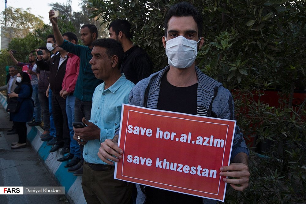 Holding up placards saying “don’t kill Khuzestan”, “Ahwaz in blackout”, “Karun River is dead” and asking for their right to breathe in a clean air along with people wearing masks, the crowd of protestor demonstrated their opposition towards the city current situation.