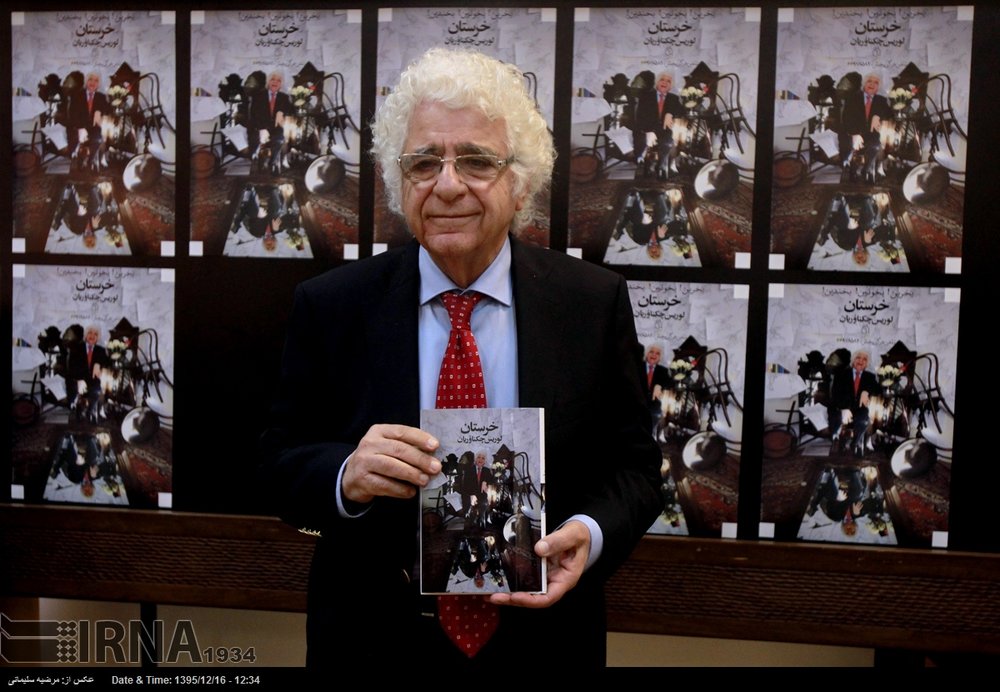 Photo: Composer Loris Tjeknavorian holds a copy of “Kharestan” during a ceremony held by the Iranian Artists Forum in Tehran on March 5, 2017 to introduce the book of short comic stories on donkeys. (IRNA/Marzieh Soleimani)