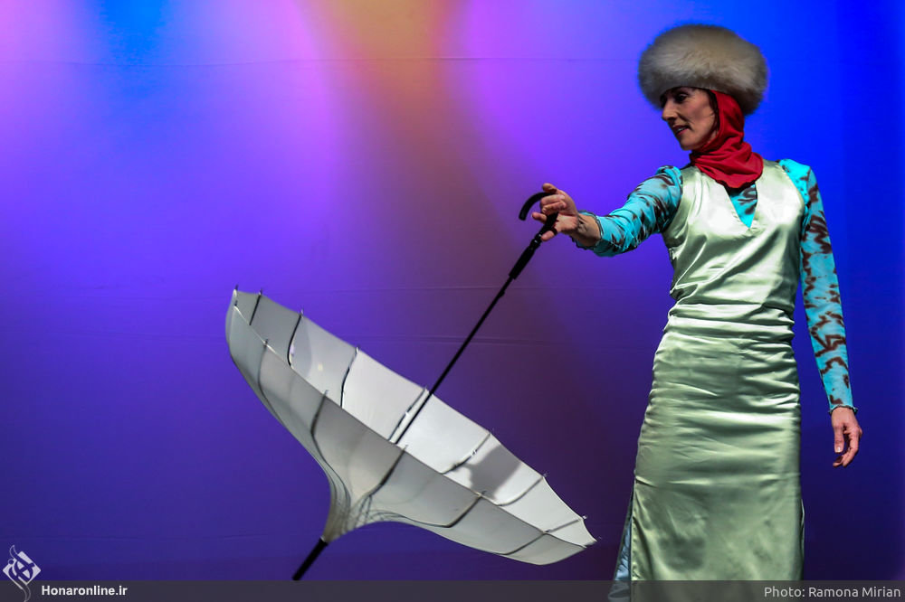 Caption: Beatrice Garnier Ikken performs in “Beyond the Words” at Tehran’s Arghanun Theater during the 35th Fajr International Theater Festival in January 2017. (Honaronline/ Ramuna Mirian)