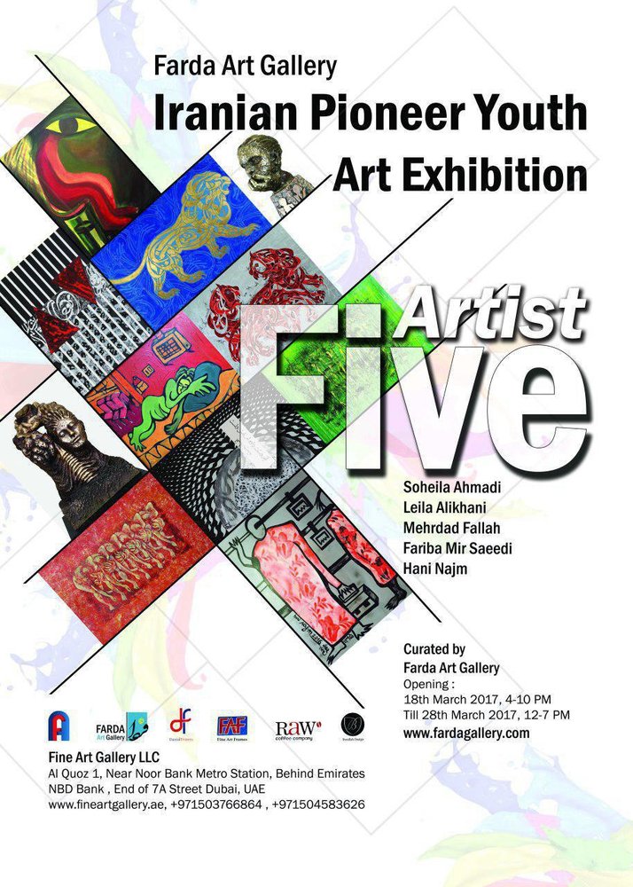About 30 works by Mehrdad Fallah, Hani Najm, Fariba Mirsaeidi, Soheila Ahmadi-Shams and Leila Alikhani have been selected for the showcase, which has been organized by Farda Gallery in Tehran, the gallery announced last week.