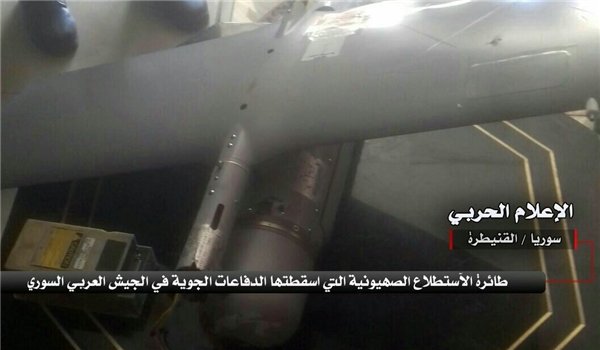 TEHRAN - The Syrian army's air defense units shot down a spy drone belonging to the Israeli regime at midnight Monday after violating Syria's airspace in the Southern parts of the Southwestern province of Quneitra.