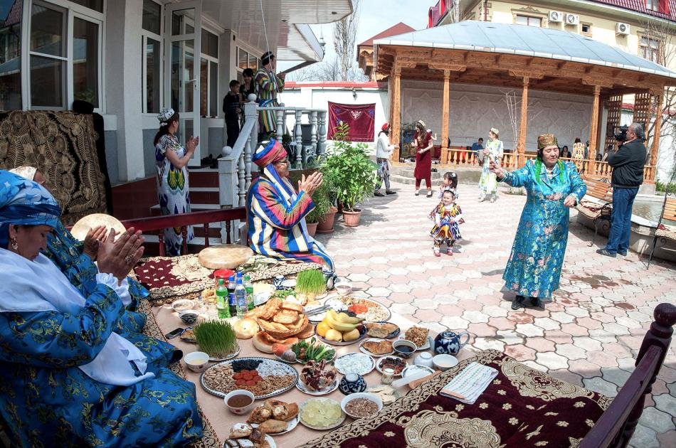 In Tajikistan, Noruz starts with house cleaning. Women and girls remove pillows and carpets and other things and put them outdoors for a good airing in the hope that the Noruz sun changes the aura. They also jettison broken vases and plates and fill cauldrons and pots with rain water, what they believe brings good omen and increases sustenance year-round.