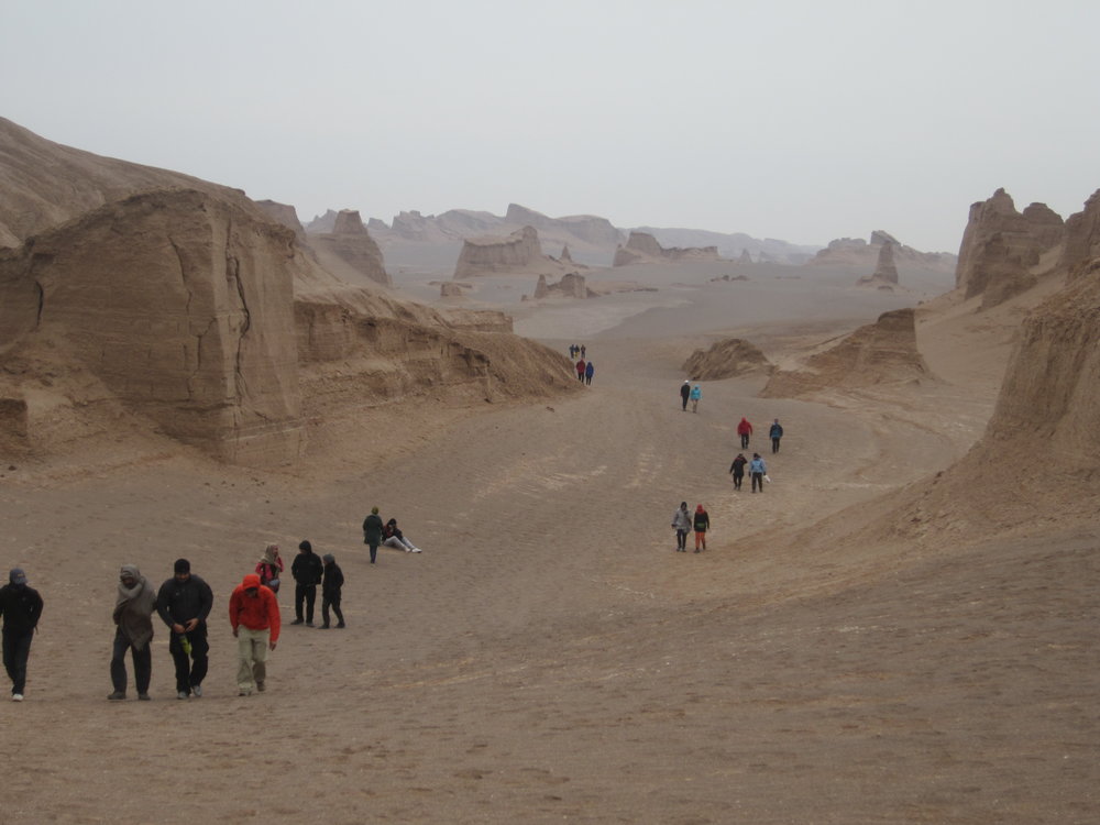 PHOTO: An undated photo depicts travelers walking across the scenic Shahdad Desert in Kerman province.