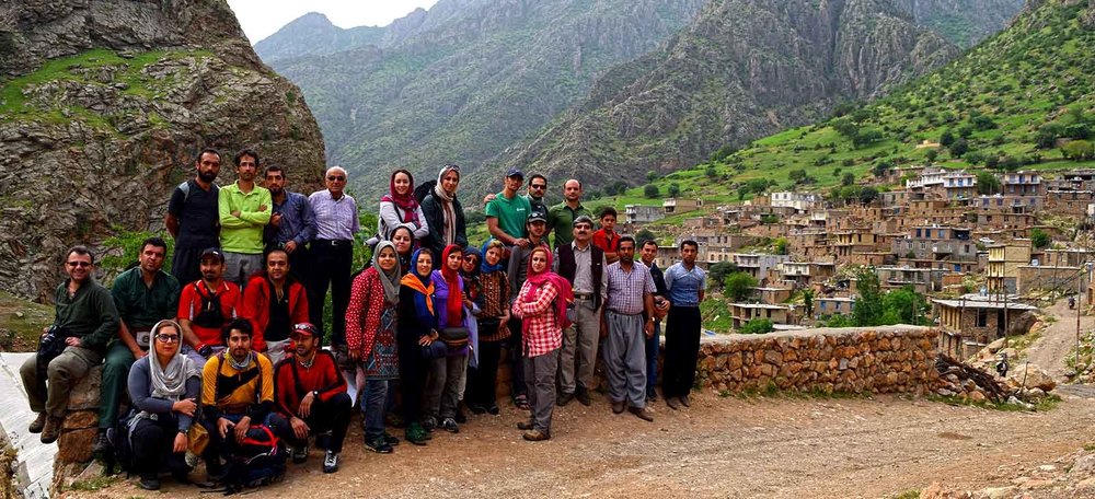 PHOTO: Travelers pose for a photo with a picturesque landscape of Iran’s Kurdistan province in the background.