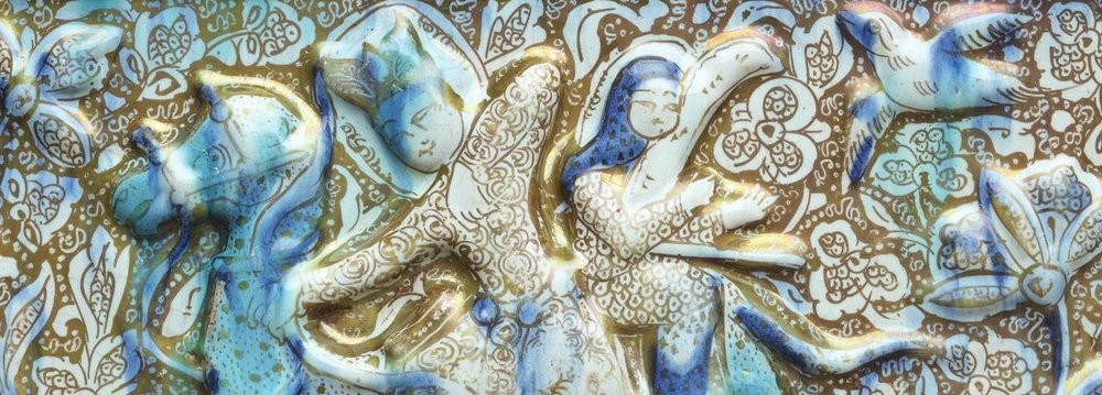 PHOTO: Detail showing an embossed Iranian pottery at the Victoria and Albert Museum in London