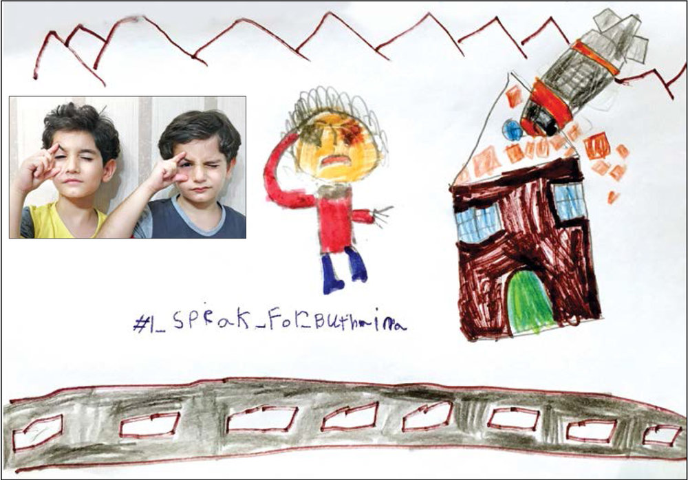 TEHRAN – Ilia and Arya, a twin six-year old boys, made this drawing after they heard about the sufferings of Bouthaina al-Rimi.