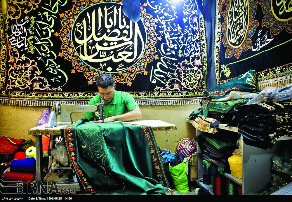A man makes a banner with Islamic patterns at his shop in Tehran on September 16, 2017 in preparation for the mourning season of Muharram, which will start this year on September 22.