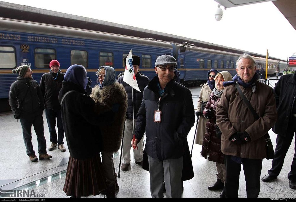 PHOTO: An undated photo depicts foreign passengers standing in Mashhad railway station as they have just got off Golden Eagle luxurious train for a layover from Moscow to Tehran.