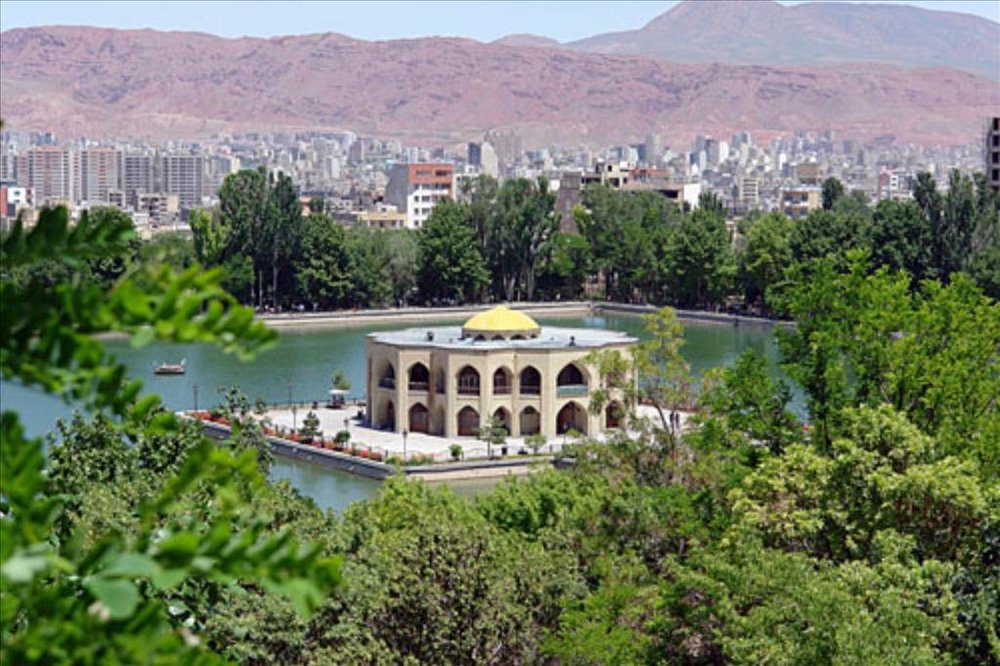 PHOTO: A view of Elgoli Park in Tabriz. Its fairground surrounds an artificial lake, in the middle of which stands tall a photogenic palace dating from the Qajar era.