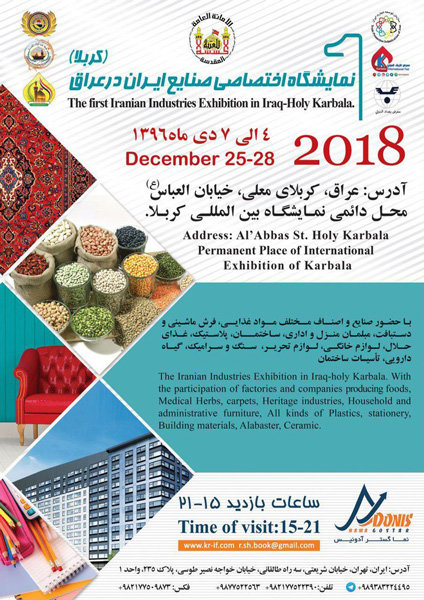 TEHRAN- The 1st Iranian Industries Exhibition is to be held in Iraq-Holy Karbala from December 25 to 28, IRNA reported.