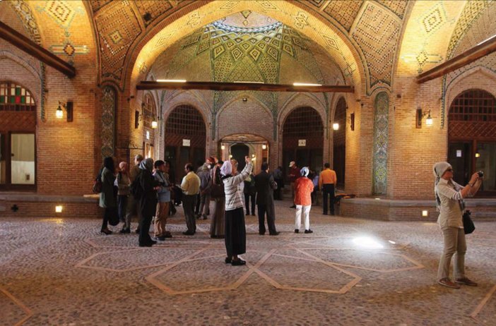 Sa’d al-Saltaneh now exhibits exquisitely crafted wares such as traditional personal ornamentations, paintings, ceramics, carpets and potteries across its long, vaulted passageways and arcades.