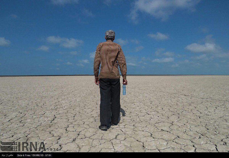 Photo: A man walks on the bottom of the dried out wetland of Gomishan in Golestan Province in an undated photo by Ali Qasemali. (IRNA)