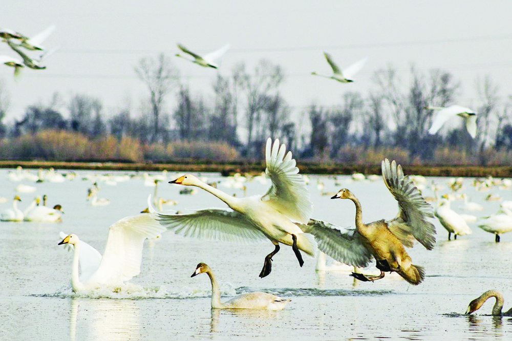 Flocks of migratory geese are shown at a wetland habitat situated in Iran’s northern Mazandaran province, February 16, 2018.