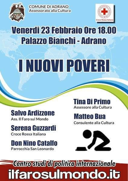 The 23rd of February, in Adrano (CT), at Palazzo Bianchi, the association “Il Faro sul Mondo” held a conference on the topic of “The New Poors”, with the patronage of the Municipal Administration and of the Italian Red Cross.