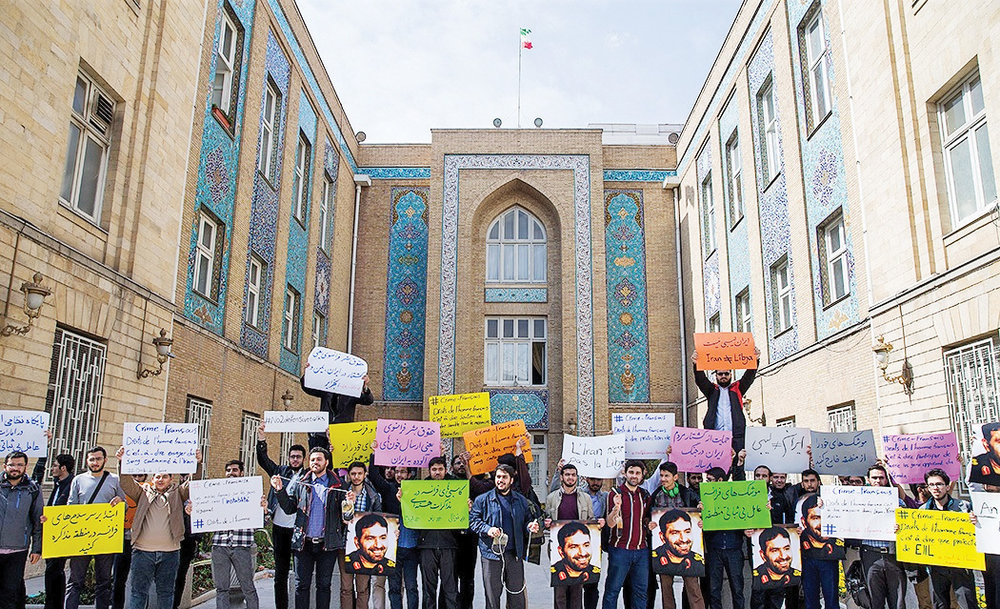 A number of students gathered in front of the Foreign Ministry in downtown Tehran on Monday to voice their protest against France over anti-Iran comments by its Foreign Minister Jean-Yves Le Drian, who held talks with a number of Iranian officials in Tehran on Monday. Upon his visit, Le Drian said Iran needs to address Europe’s demands over its ballistic missile program or risk new sanctions.