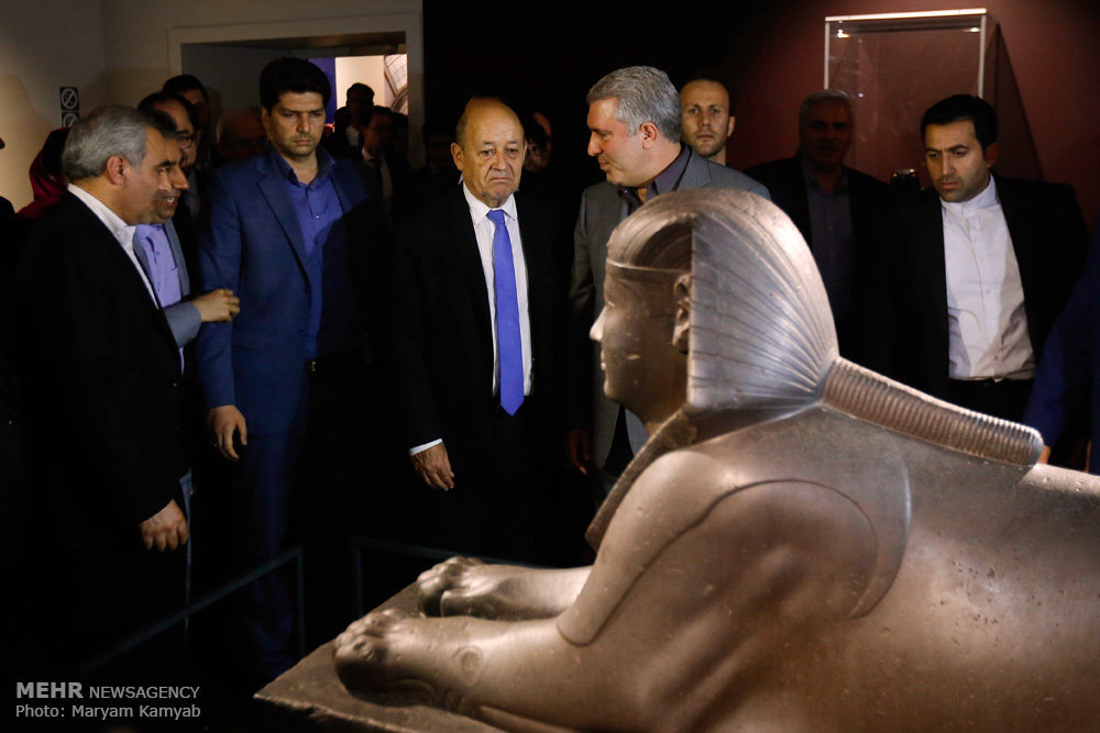 Visiting French Foreign Minister Jean-Yves Le Drian attended the opening ceremony held at the National Museum of Iran on Monday, a day after the museum marked its 80th anniversary.
