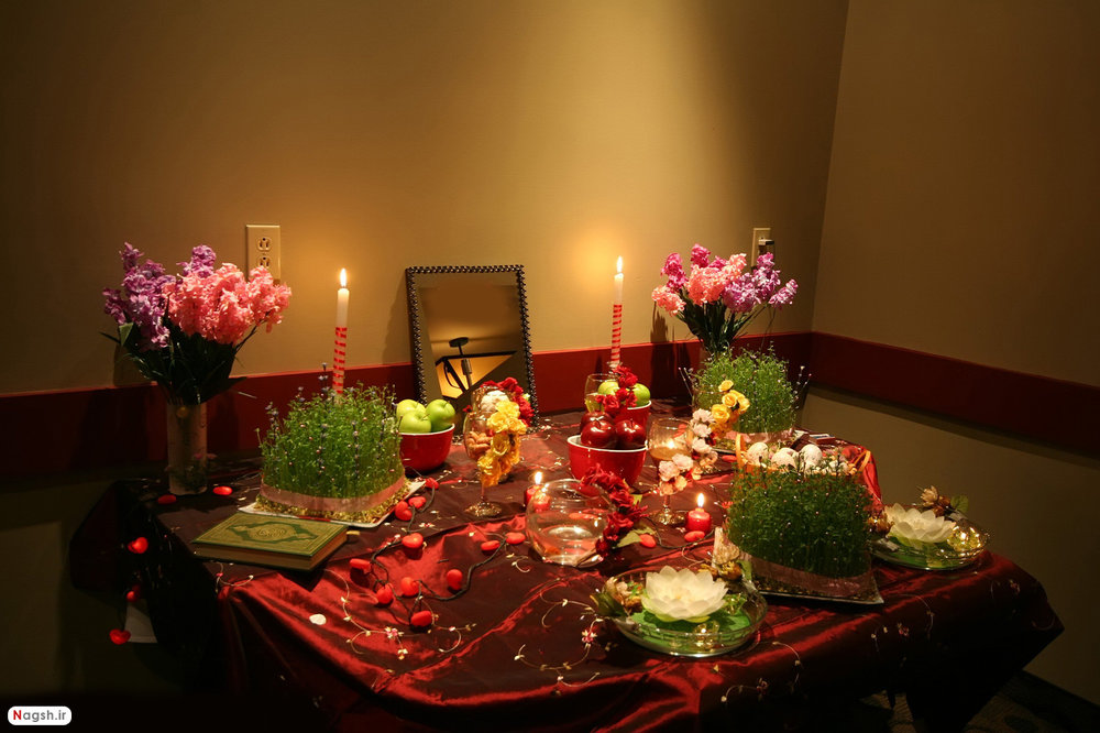 Another tradition of Noruz is the Haft-Sin table (an arrangement of seven symbolic items starting with ‘S’ in Persian). Traditionally a poem by Iranian poet Saadi had been written on tablecloth’s margin emphasizing that the table is provided for both friends and enemies (signifying peace and friendship).