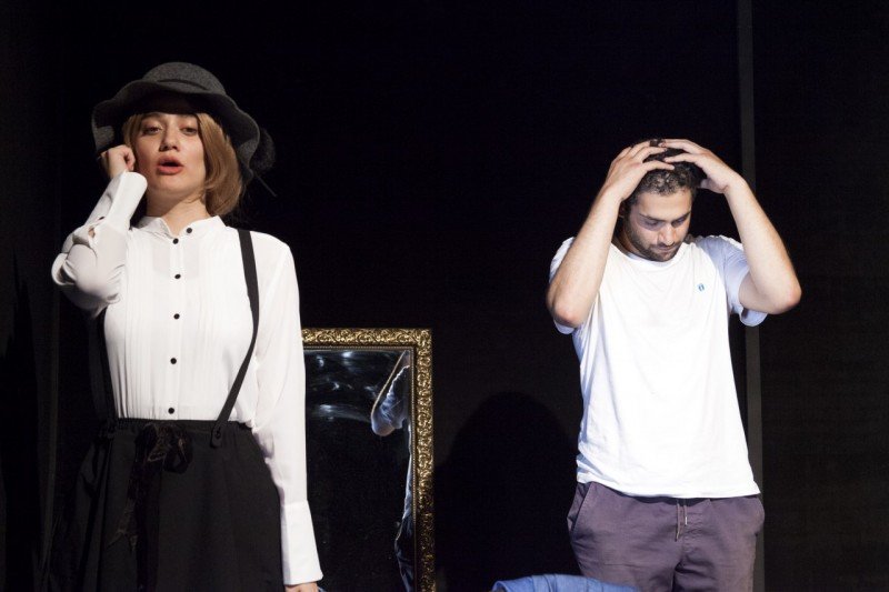 Photo: Farinaz Nasrin (L) and Ruzbeh Shafiei act in a scene from American playwright Neil Simon’s comedy “The Star-Spangled Girl” at Tehran’s Mehregan Theater House. (Tiwall/Ziaeddin Safavian)