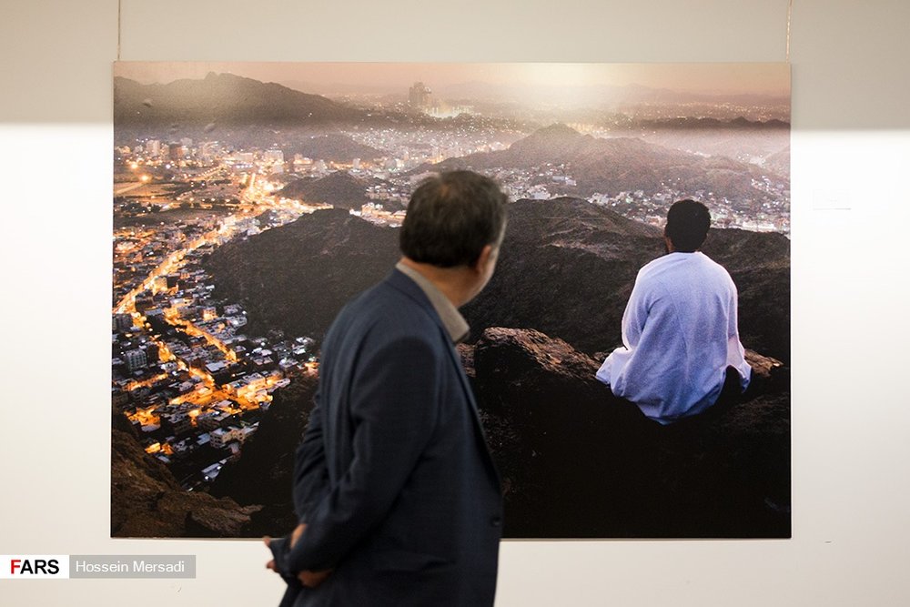 Photo: A man visits an exhibition of photos on Hajj at Art Bureau’s Gallery No. 1 in Tehran on July 15, 2018. (Fars/Hossein Mersadi)