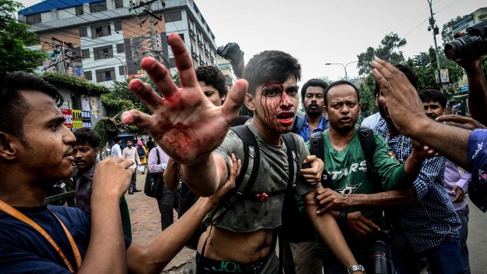 Thousands of students brought Dhaka to a standstill after two teenagers were killed by a speeding bus on 29 July. A large number of journalists and photojournalists also gathered in front of the Jatiya Press Club in Dhaka on Tuesday morning and formed a human chain in protest against the attacks, Bangladeshi newspaper Daily Star reported reported.
