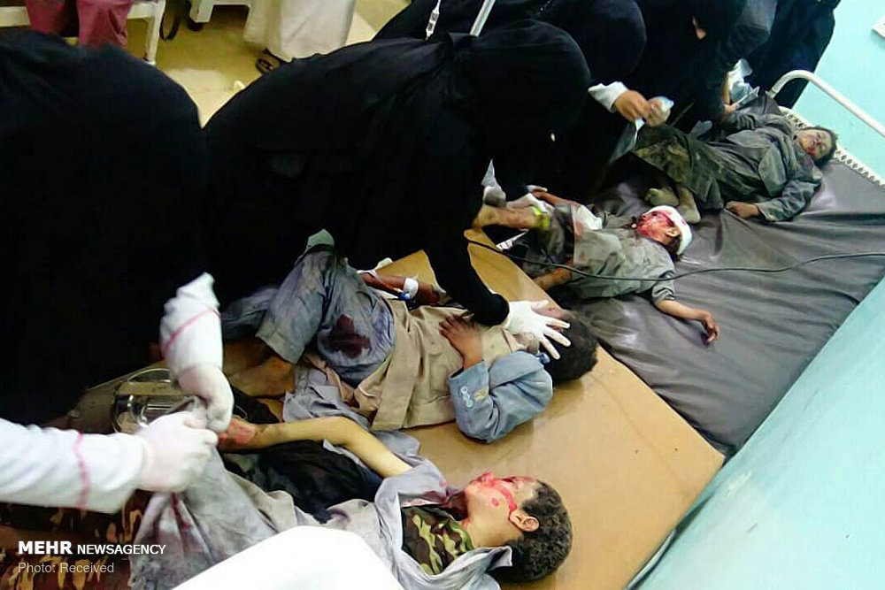An airstrike by the Saudi-led coalition hit a school bus in the Dahyan market in Saada province on Thursday, killing at least 44 Yemeni students and wounding 77.