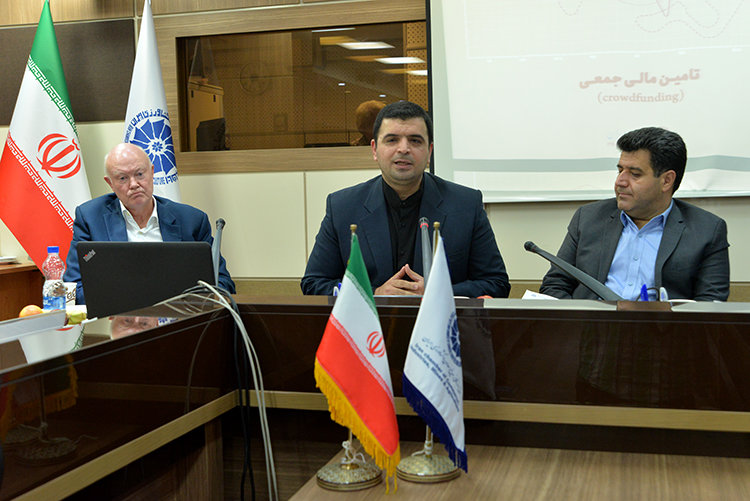 PHOTO: IFB CEO Amir Hamooni (C) speaking in a meeting on crowdfunding at the place of ICCIMA