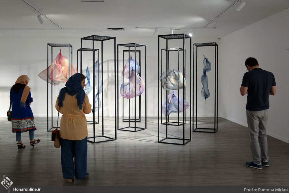 Photo: Art enthusiasts visit an installation exhibition by Solmaz Lienhard at Ariana Gallery on August 3, 2018. (Honaronline/Ramona Mirian)