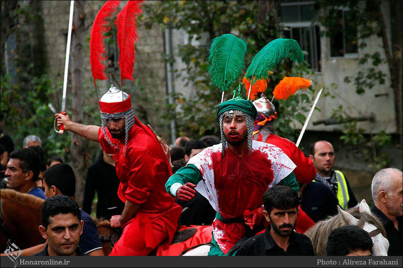 Photo: A group performs a tazieh (Iranian passion play) about Imam Hussein (AS) in the northern Iranian town of Ziabar on November 20, 2016 to commemorate Arbaeen, which marks the end of the 40-day mourning period following the martyrdom of the Imam and his loyal companions on Ashura. (Honaronline/Alireza Farahani)