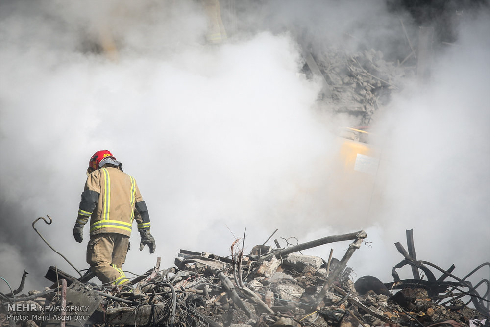 On January 19, the 17-story Plasco shopping center, in Tehran, was smashed to pieces by a blazing fire and trapped 15 firefighters and a number of civilians under piles of rubble. However, after nine days of incessant search through the debris bodies of the firefighters and some of the civilians were found. Another firefighter also passed away at the hospital due to the severe burns he sustained on the day the iconic building burnt down.