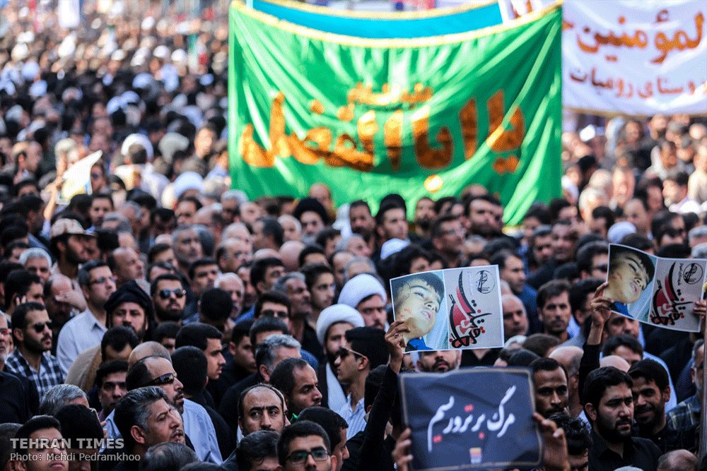 Told that civilians were among the dead, he said: “What was targeted was the viewing platform [of the military parade] where officials stood. Ordinary people were not on that platform.” He added: “I insist that armed resistance is part of our resistance.”
