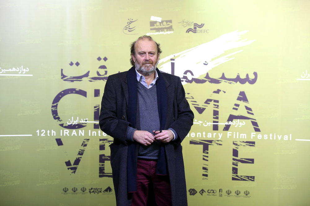 Photo: Italian documentarian Gianfranco Pannone poses during a photocall for “Mondo Za” during the 12th Cinema Verite festival at Tehran’s Charsu Cineplex on December 15, 2018. (DEFC)