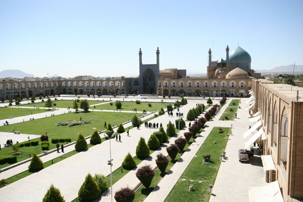 It is hemmed on four sides by magnificent buildings: to the east, the Sheikh Lotfollah Mosque; to the west, the palace of Ali Qapu; to the north, the portico of Qeysarieh; and to the south, the eminent Imam Mosque.