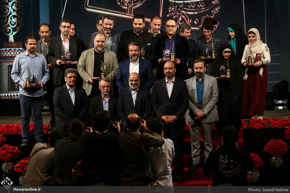 Photo: A number of honorees and organizers pose for a photo with their awards at the IRIB International Conference Hall on March 12, 2019. (Honaronline/Saeid Rabiei)