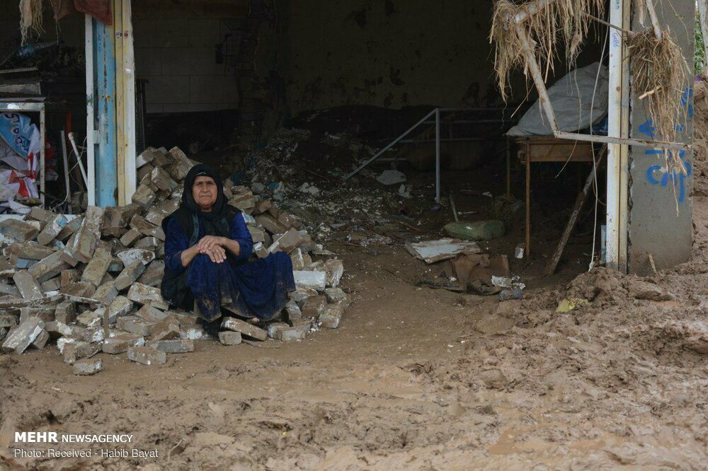 Photo: A woman sits in the ruins of her house in Poldokhtar on April 7, 2019 after a flood hit the town in Lorestan Province last week. (Mehr/Habib Bayat)