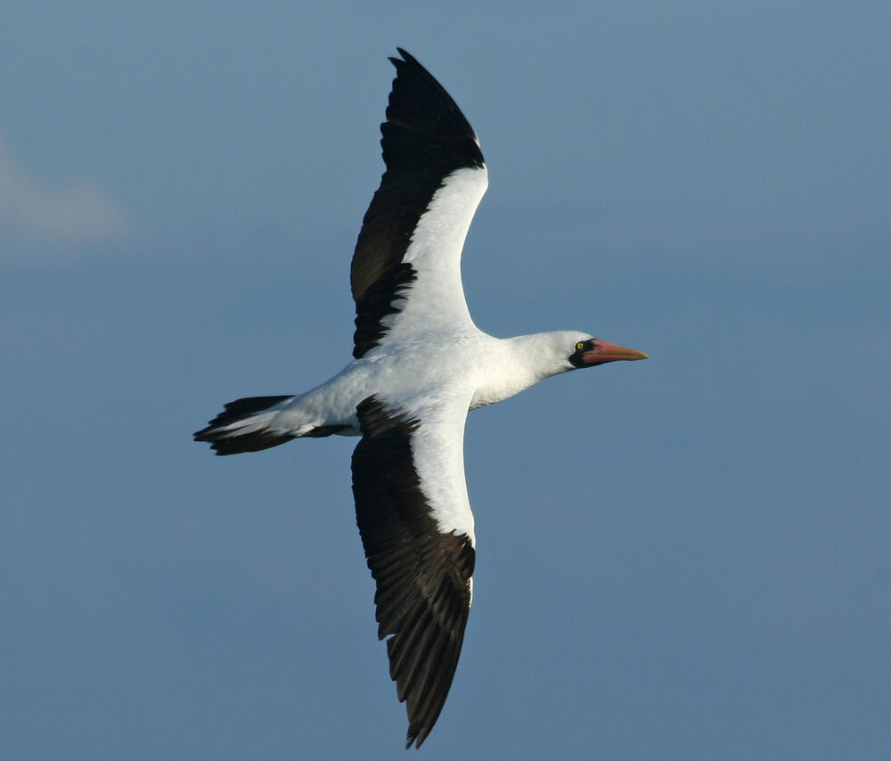 The masked booby is a large seabird of the booby family, Sulidae. They breed on islands in tropical oceans, except in the eastern Atlantic. The masked booby is a fairly sedentary bird, wintering at sea, but rarely seen far away from the breeding colonies.