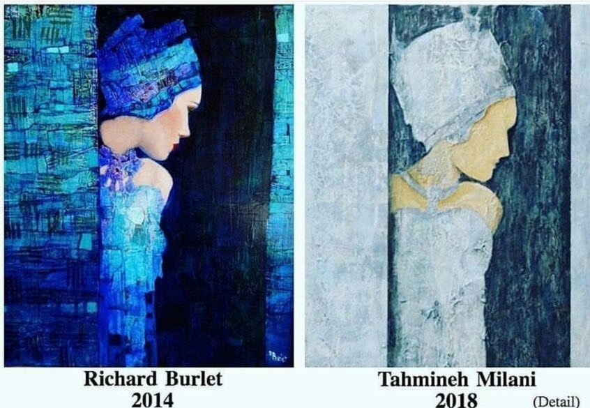 Photo: This combination photo shows French artist Richard Burlet’s painting copied by Tahmineh Milani.